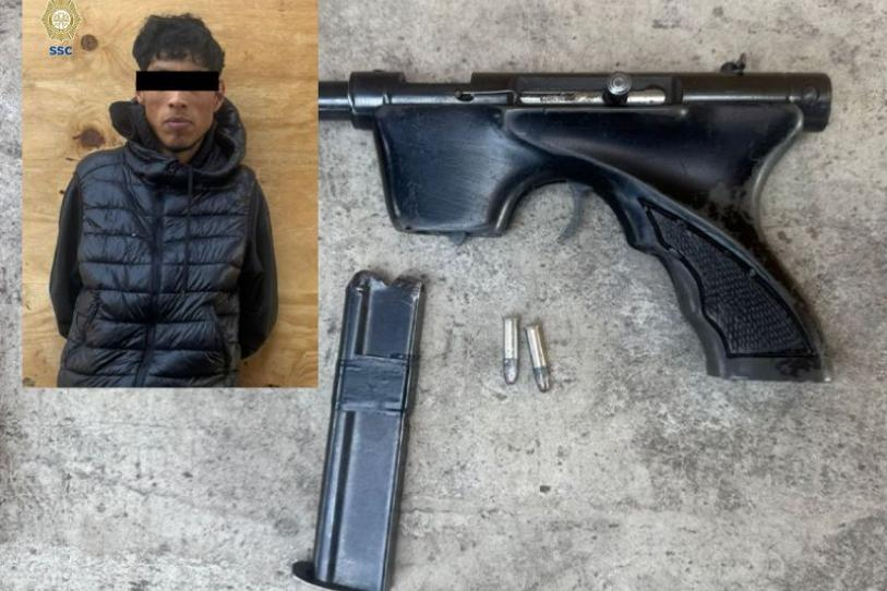 “Los policías acordonaron el inmueble y detuvieron al posible responsable de 25 años de edad, a quien le efectuaron una revisión preventiva, en apego al protocolo de actuación policial, tras la cual le aseguraron un arma de fuego tipo subametralladora y dos cartuchos útiles”.