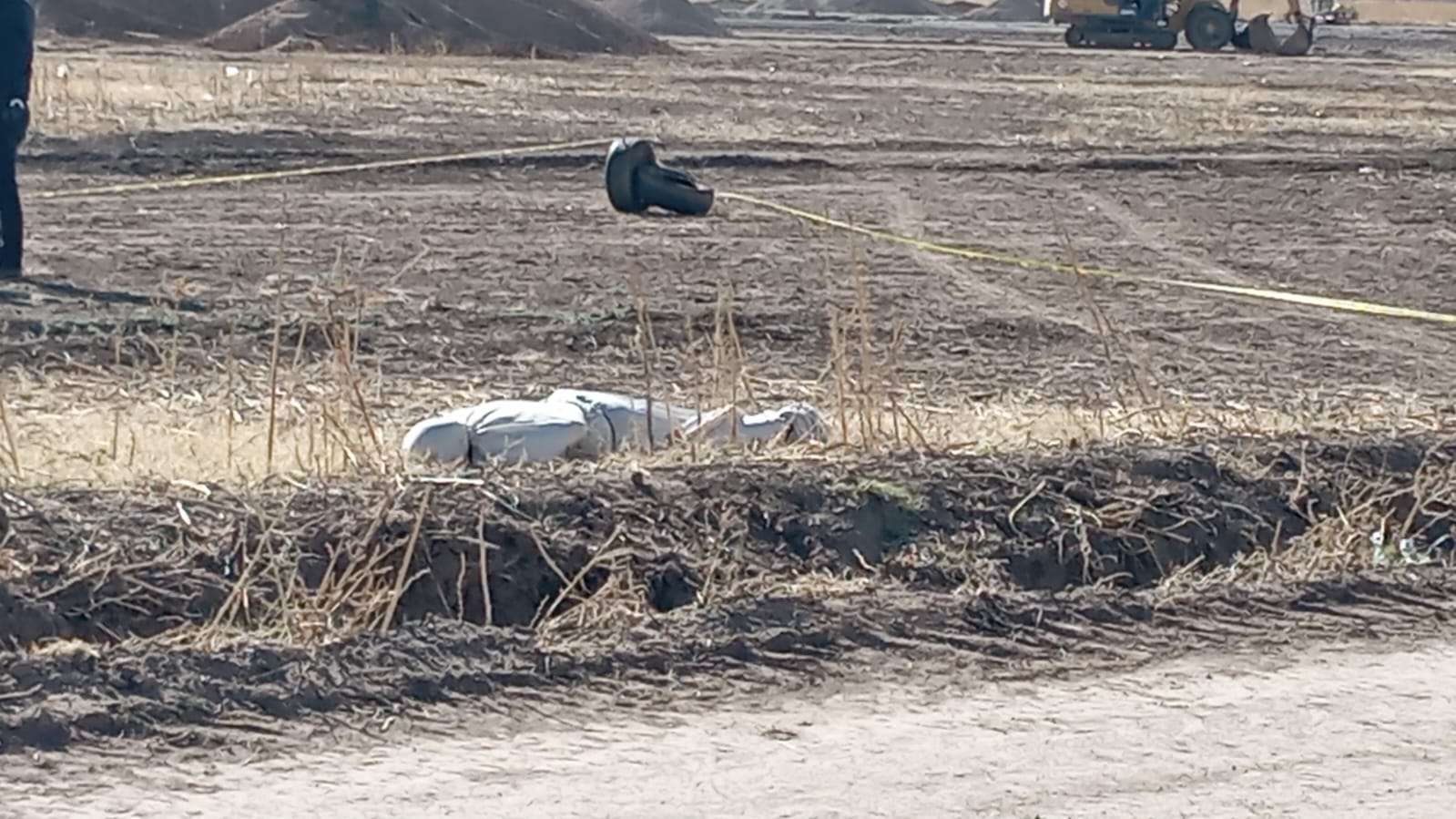 Al inspeccionar el área de brechas, los agentes confirmaron la presencia de un masculino sin vida. El cuerpo yacía boca abajo y se encontraba completamente envuelto en una sábana de color blanco, técnica comúnmente utilizada por grupos delictivos para el abandono de víctimas.