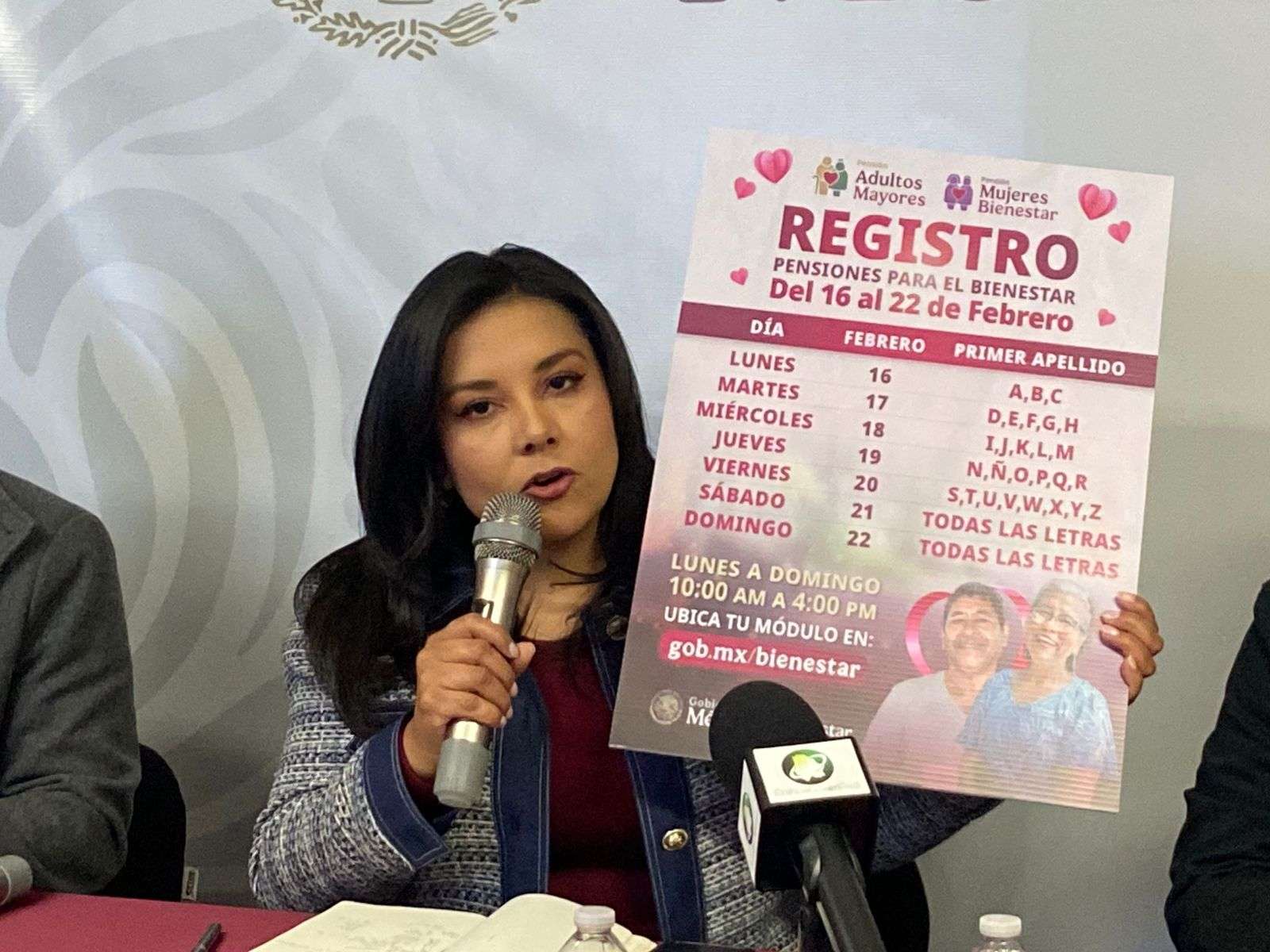 Chihuahua.- La delegada del Bienestar Mayra Chávez dio a conocer las fechas para el registro de las pensiones del bienestar de adultos mayores y de mujeres bienestar que se realizará en el mes de febrero.