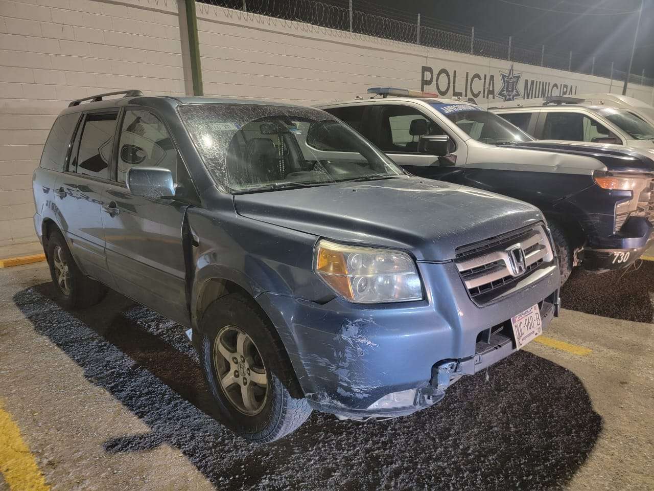 Al detener al conductor y realizar la inspección preventiva, los agentes observaron que la parrilla frontal del vehículo se encontraba dañada. Asimismo, entre los asientos se localizó un arma blanca con manchas hemáticas, la cual fue debidamente asegurada.