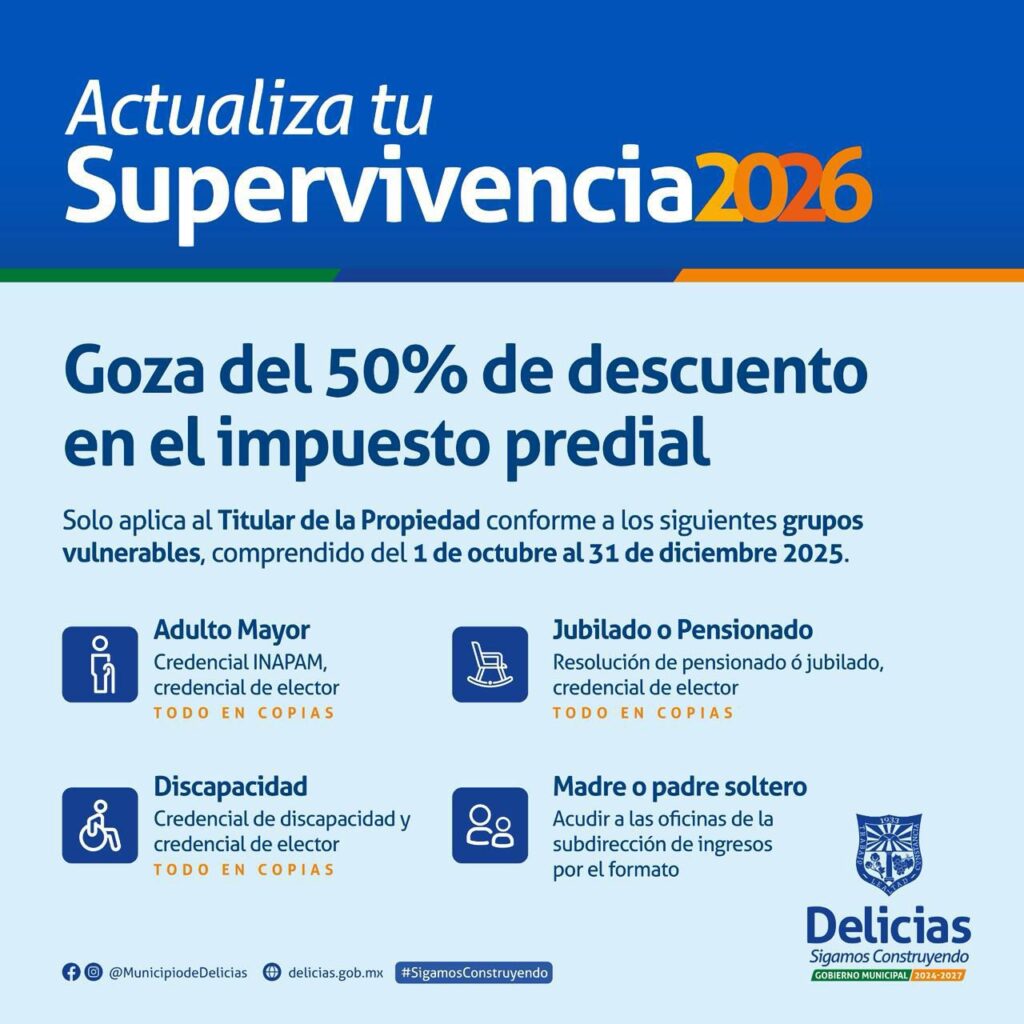 Actualiza tu supervivencia y obtén un 50% de descuento en el impuesto predial 2026