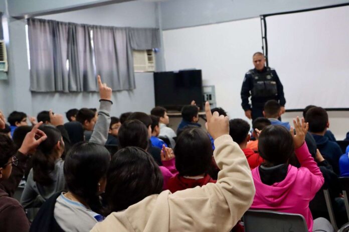 Ciudad Juárez.- Con el objetivo de generar conciencia entre adolescentes, la Secretaría de Seguridad Pública Municipal llevó a cabo una plática informativa en la Secundaria Técnica 88, enfocada en los riesgos asociados al consumo de sustancias.
