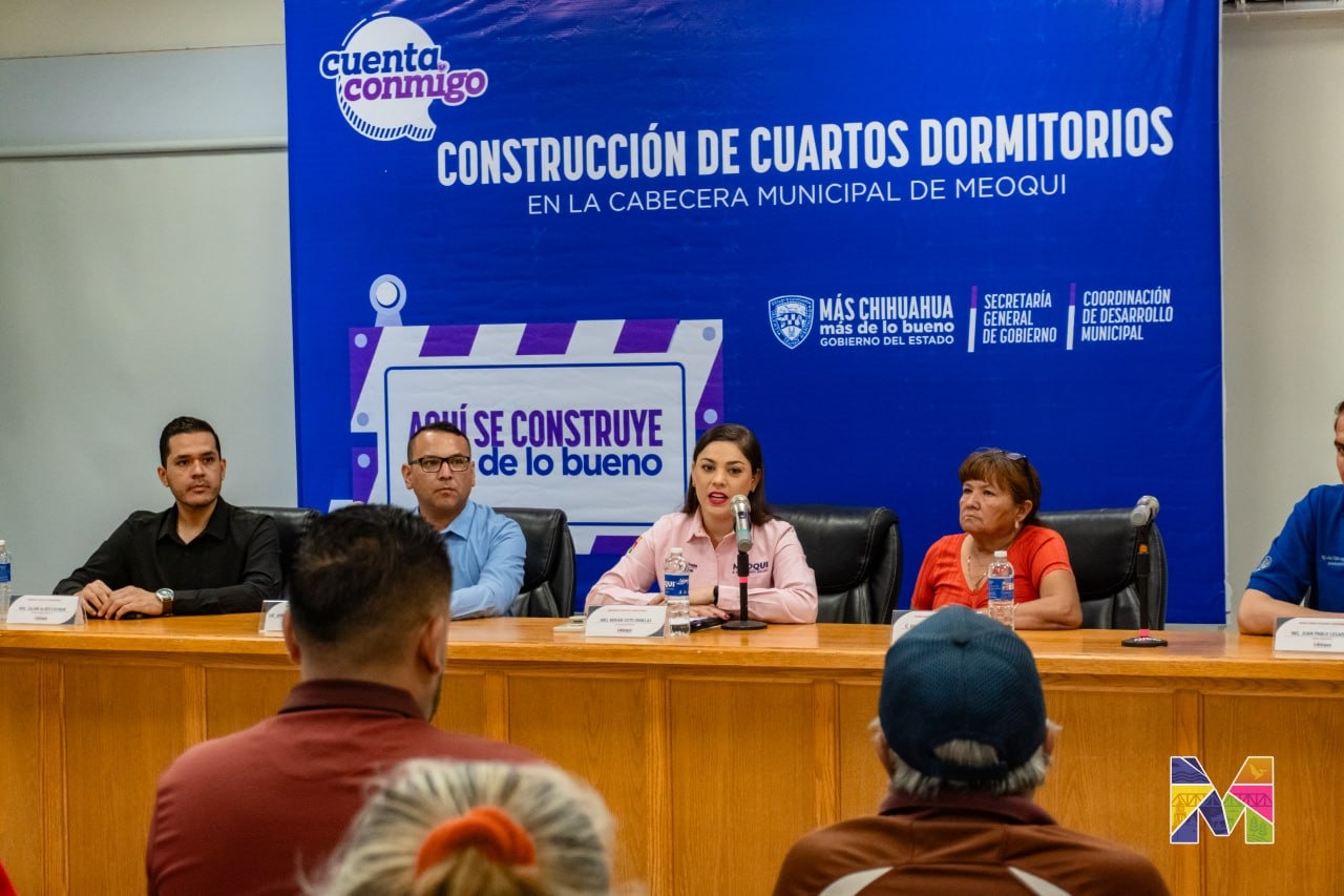 Meoqui.- “En representación de todos los vecinos aquí presentes, agradecer a la arquitecta y a todo su equipo, que hoy se nos concede nuestros cuartos dormitorios, siga adelante y siempre va a tener nuestro apoyo, muchas gracias” dijo Lupita Juárez, en el marco del arranque del Programa de Construcción de Cuartos Dormitorios de Gobierno del Estado en Meoqui, que tendrá una inversión cercana a 3 millones y medio de pesos. La alcaldesa Miriam Soto y el Coordinador de Desarrollo Municipal, Jorge Armando Puentes, anunciaron el mejoramiento para 30 viviendas más, tanto en la cabecera como en los seccionales de Lázaro Cárdenas y Guadalupe Victoria, así como en la comunidad de la Felipe Ángeles, posicionando a Meoqui como un referente a nivel estatal en proyectos con sentido social.
