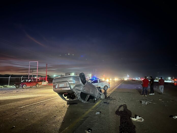 Un vehículo con daños totales y una importante movilización de los cuerpos de seguridad fue el saldo de una aparatosa volcadura registrada sobre la carretera federal número 45, a la altura de la colonia Terrazas.