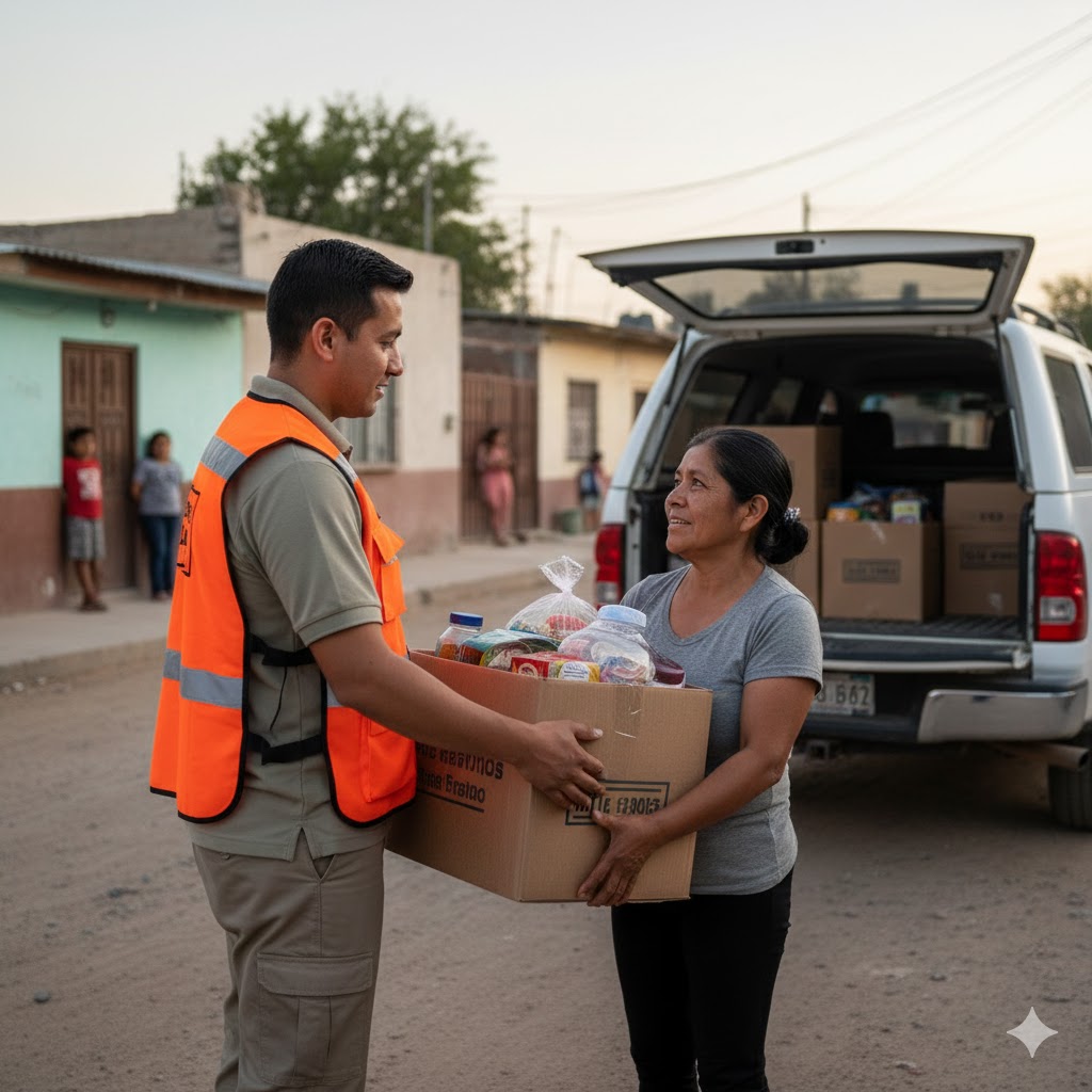 • Despensas Mensuales: Paquetes con granos, aceite, leche y artículos de primera necesidad.