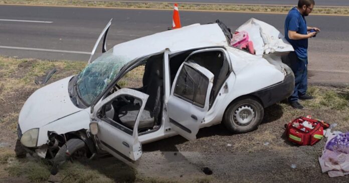 Un aparatoso accidente tipo volcadura se registró en el kilómetro 130+500 de la carretera federal 45, frente al rancho Zaragoza, en el tramo que conecta Saucillo con Delicias.