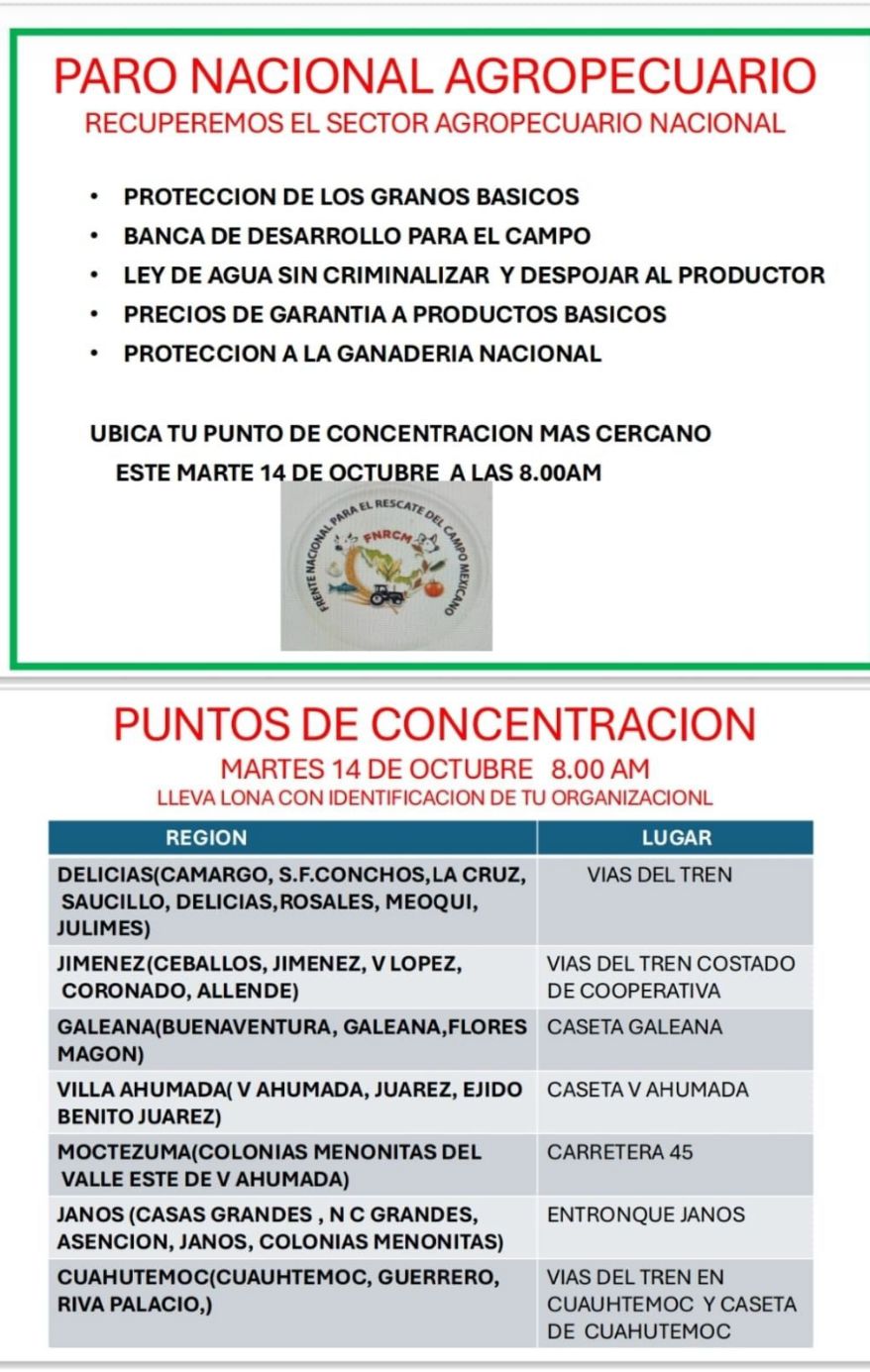 También piden que haya una reestructuración a la Ley de Aguas y precios de garantía, así como una reunión con la presidenta Claudia Sheinbaum y Marcelo Ebrard para que atiendan su petición de que el comercio de granos esté fuera del T-MEC.