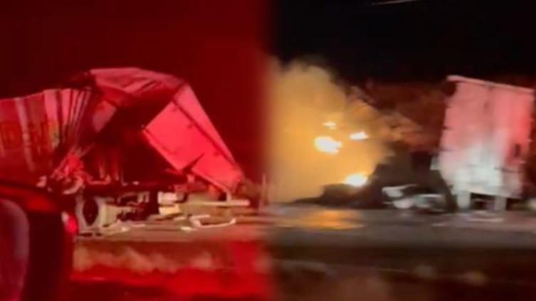 ¡CAOS EN LA CARRETERA!: Choque e incendio de tráileres paraliza la circulación