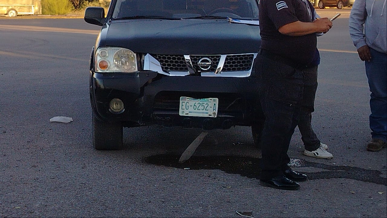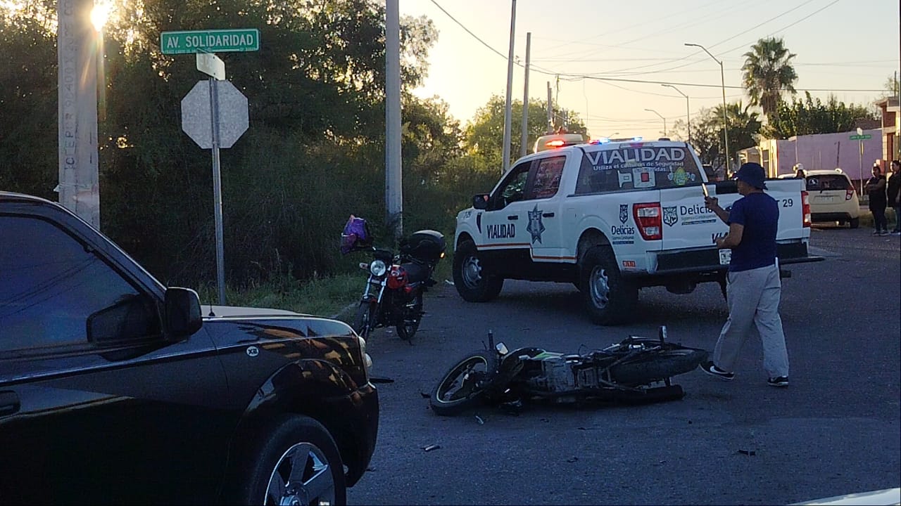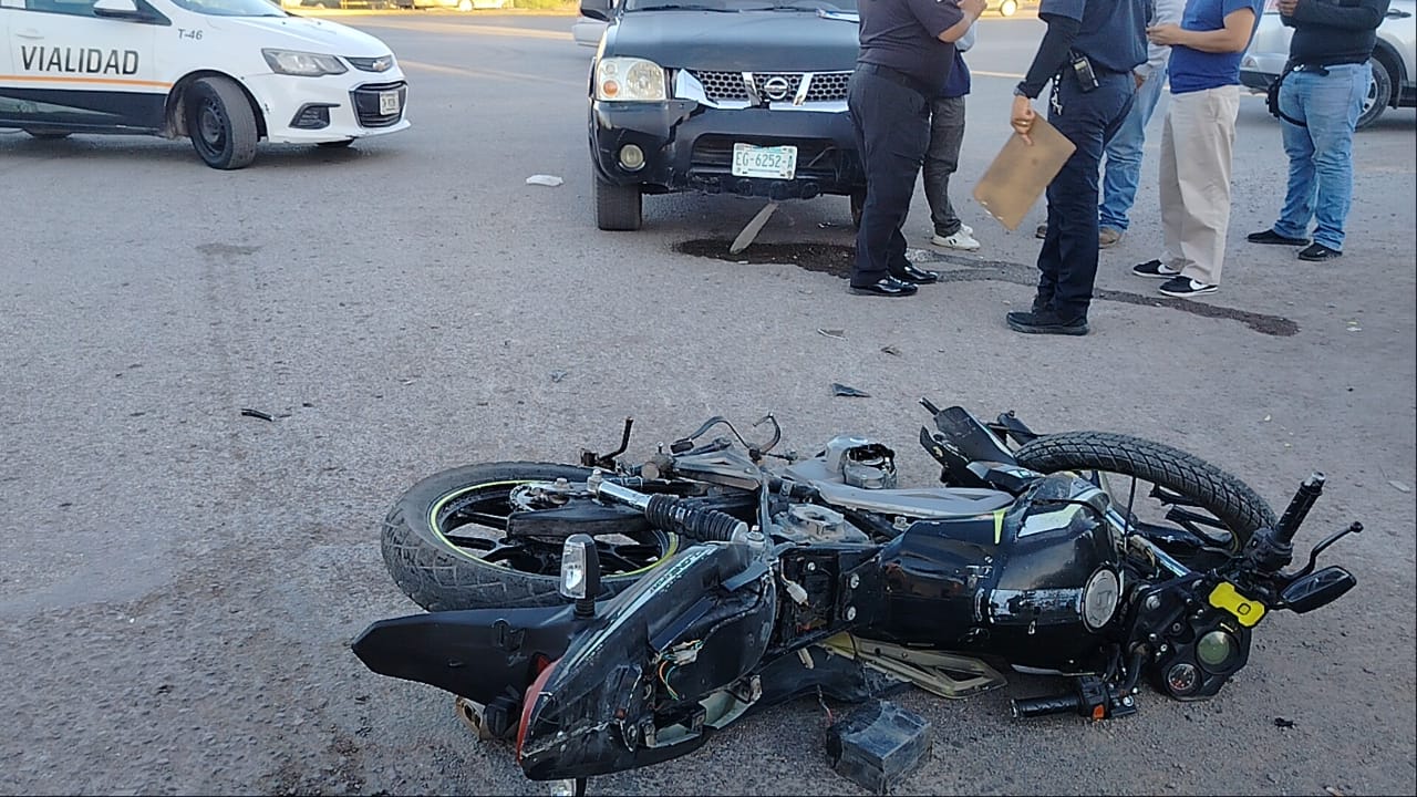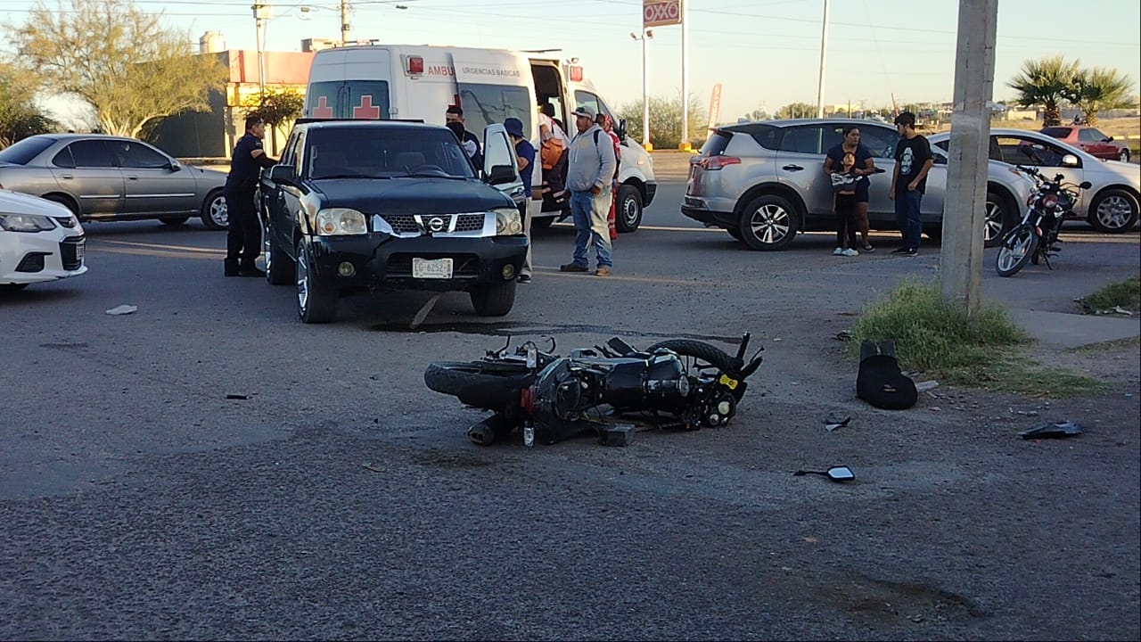 Un accidente vial ocurrió la tarde de este miercoles en el cruce de la calle 5 de Julio y la avenida Solidaridad, en el sector oriente de la ciudad, en donde se divide el fraccionamiento La Labor de la colonia Obrera, donde una motocicleta de la marca Itálica fue impactada por una camioneta Frontier color negra.