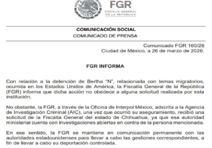 CHIHUAHUA, CHIH. — En un giro inesperado que sacude la escena política del estado, la Fiscalía General de la República (FGR) ha solicitado formalmente a las autoridades de Estados Unidos la deportación de Bertha Gómez Fong, esposa del exgobernador César Duarte Jáquez. La detención, ocurrida el pasado 25 de marzo en territorio estadounidense, se originó por irregularidades migratorias, pero ha activado de inmediato la maquinaria judicial de Chihuahua en este 2026.