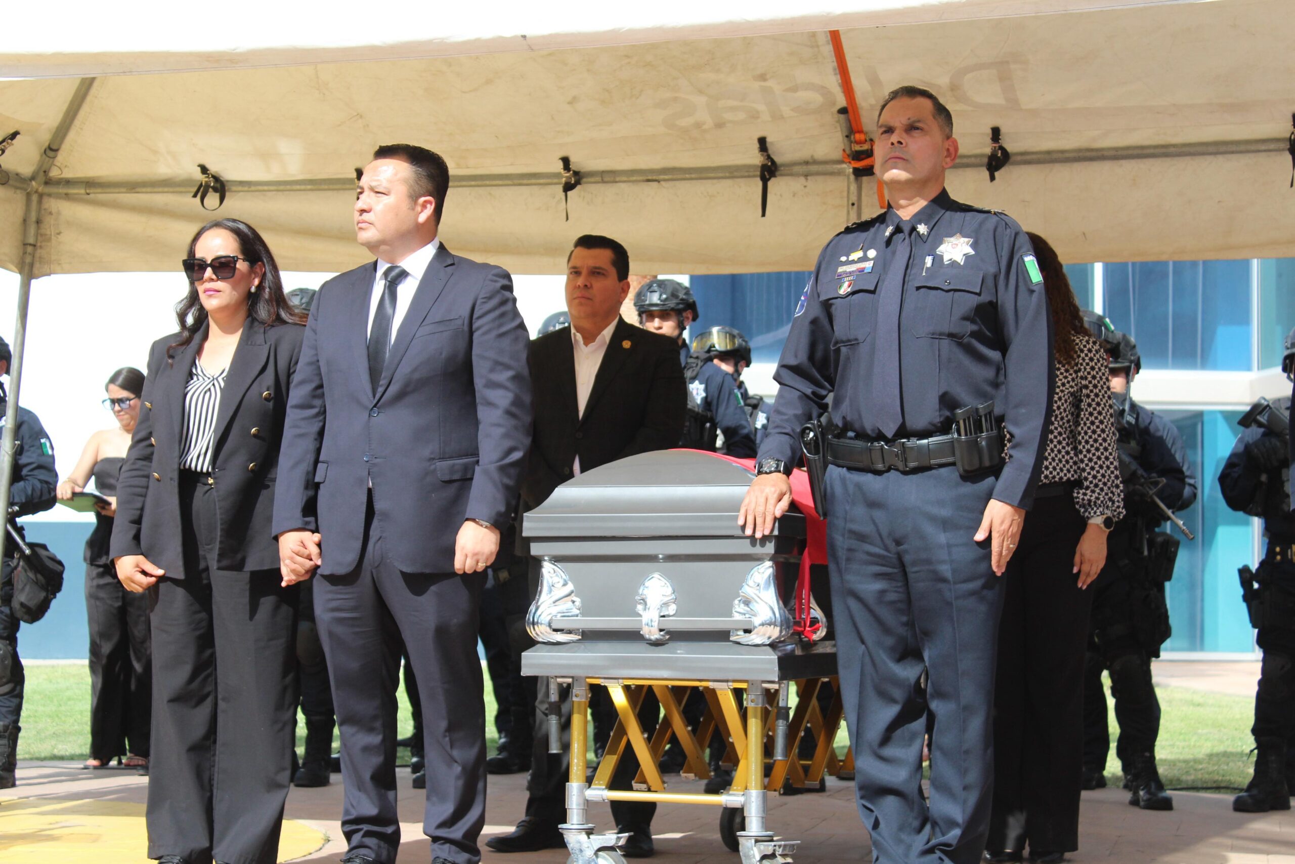 El secretario de Seguridad Pública del Estado (SSPE), Gilberto Loya, acudió al último pase de lista del director de la Policía Municipal de Delicias, Jorge Luis Bustamante, quien recientemente perdió la vida.