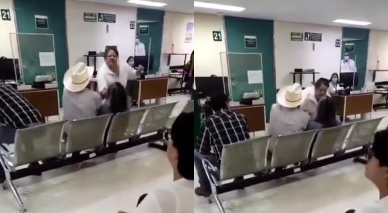 Viralizaron el video de una mujer que agarró a manazos a una pareja de señores que se encontraban en la sala de espera de una clínica del IMSS en Sonora, el hombre era su padre.