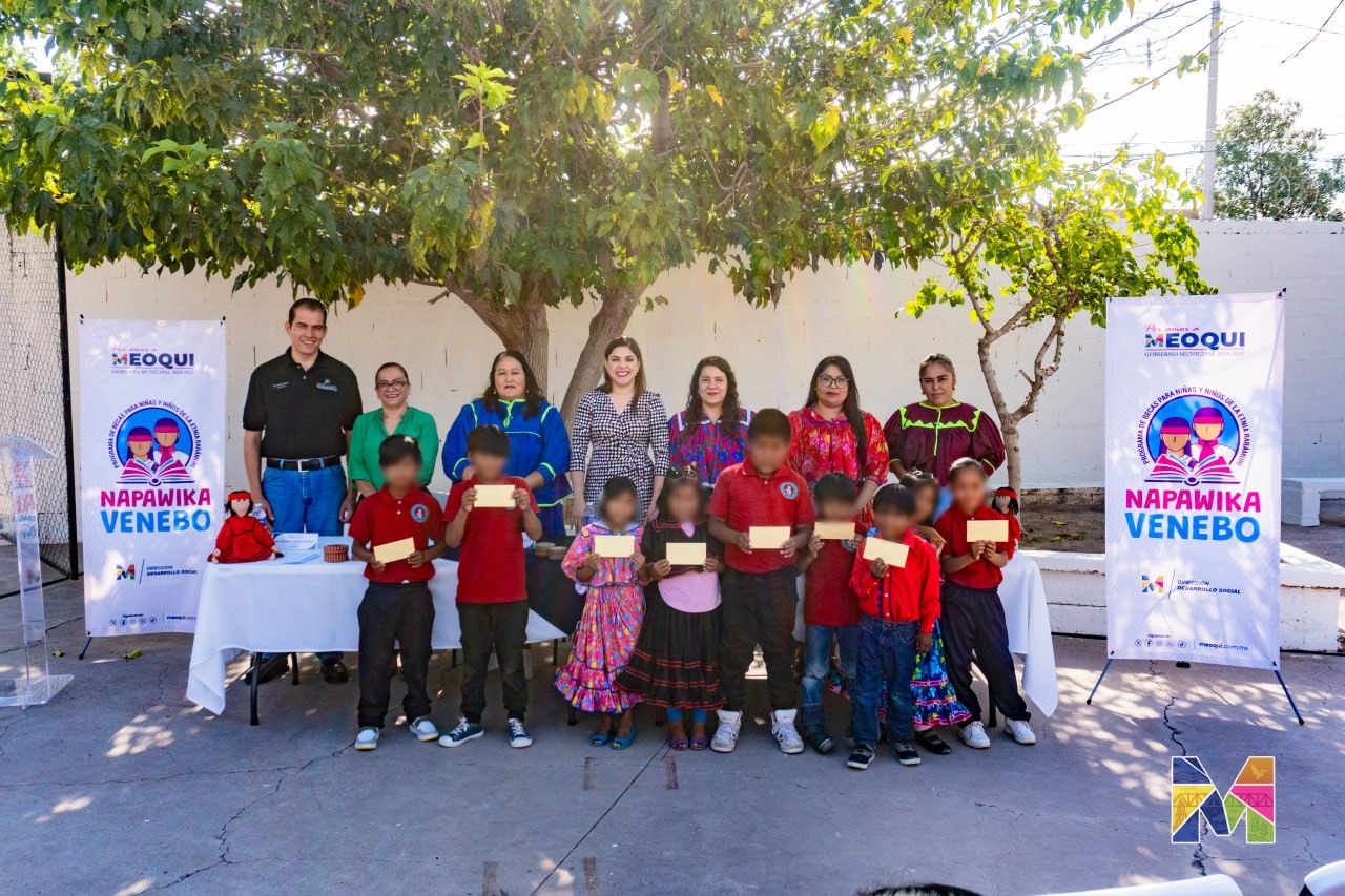 Meoqui.- “La entrega de esta beca a 10 alumnos no es solo recurso o dinero, es una forma de incentivarlos y motivarlos para que sigan estudiando y se sigan superando”, así lo dijo la alcaldesa Miriam Soto, quien encabezó la entrega de las becas “Napawika Venebo” correspondientes al mes de septiembre a alumnos de la comunidad Rarámuri de la Escuela indígena Niños Héroes, buscando evitar la deserción escolar dentro de este sector de la población.