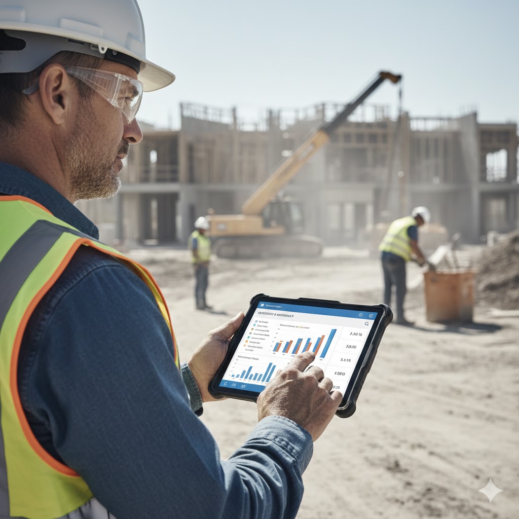 Un ERP especializado permite monitorear insumos, órdenes de compra y avances de obra desde dispositivos móviles.