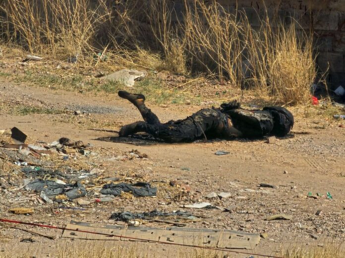 CHIHUAHUA, CHIH. — Un macabro hallazgo sacudió la mañana de este sábado 21 de marzo a los vecinos de la colonia Madera 65, al sur de la ciudad, luego de localizarse el cuerpo de una persona calcinada en un camino de terracería.