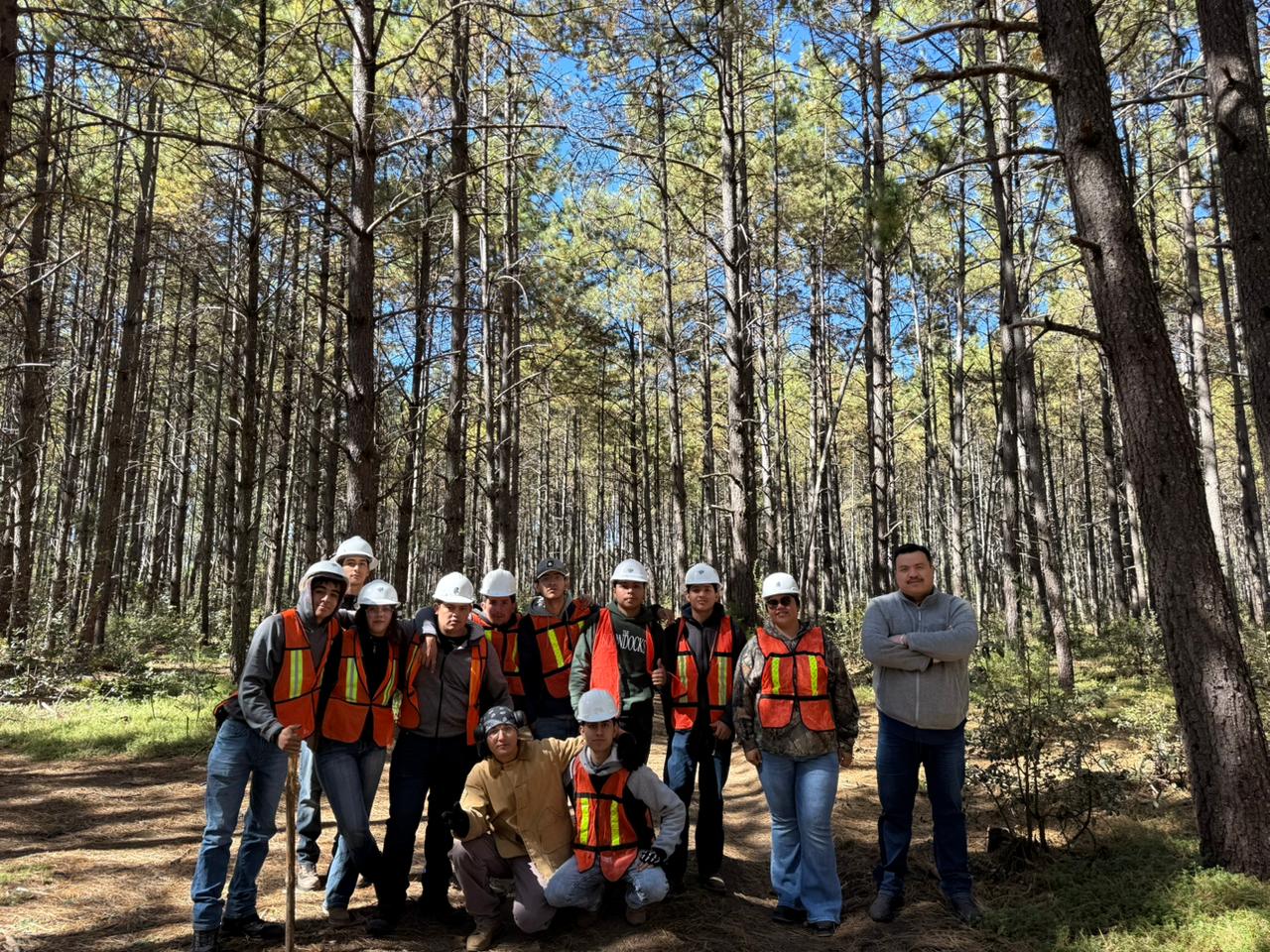 Como parte del recorrido, el grupo de la UACH visitó el aserradero del ejido La Victoria, para observar el flujo operativo del aprovechamiento forestal y los procesos de transformación primaria de la madera. Posteriormente, se trasladaron al área de conservación Santa Bárbara, en el Ejido El Brillante, donde investigadores del ITES guiaron una práctica de botánica forestal enfocada en la identificación de especies y su relevancia ecológica.