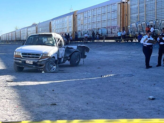 El fatal accidente ocurrió cuando el conductor de una camioneta tipo pickup intentó cruzar las vías antes del paso de la pesada maquinaria, provocando un impacto devastador que arrastró la unidad varios metros.