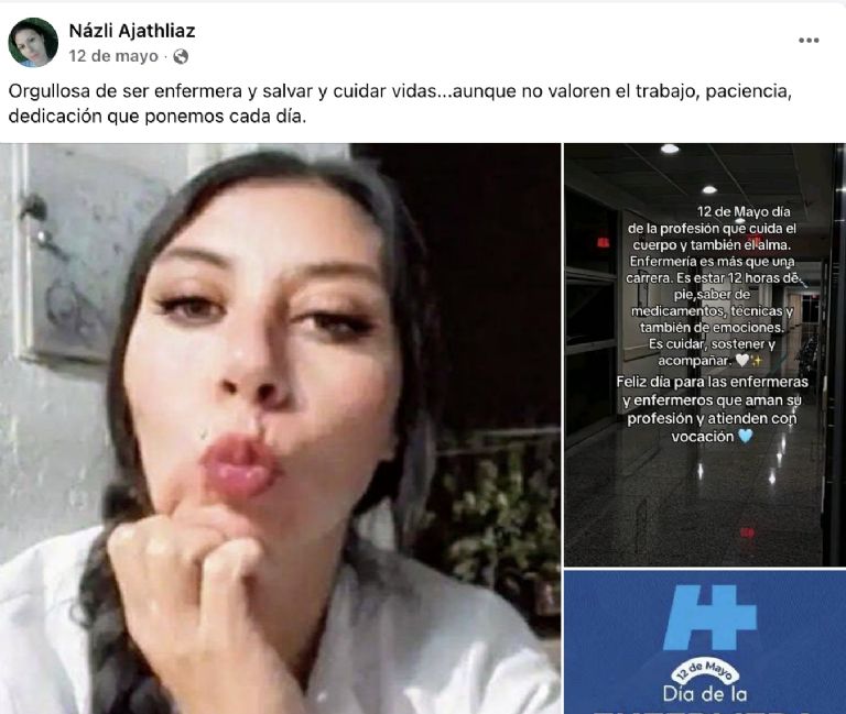 En redes sociales usaba el nombre falso de Názli Ajathliaz. Decía que había nacido en Turquía y que estudió en universidades de Argentina y Panamá. Publicaba frases como “salvar vidas es mi pasión” y compartía fotos como si fuera una madre dedicada, aunque en realidad no tenía ningún título ni licencia como enfermera. Su perfil en redes sigue activo, aunque no se ha actualizado desde el día del crimen.