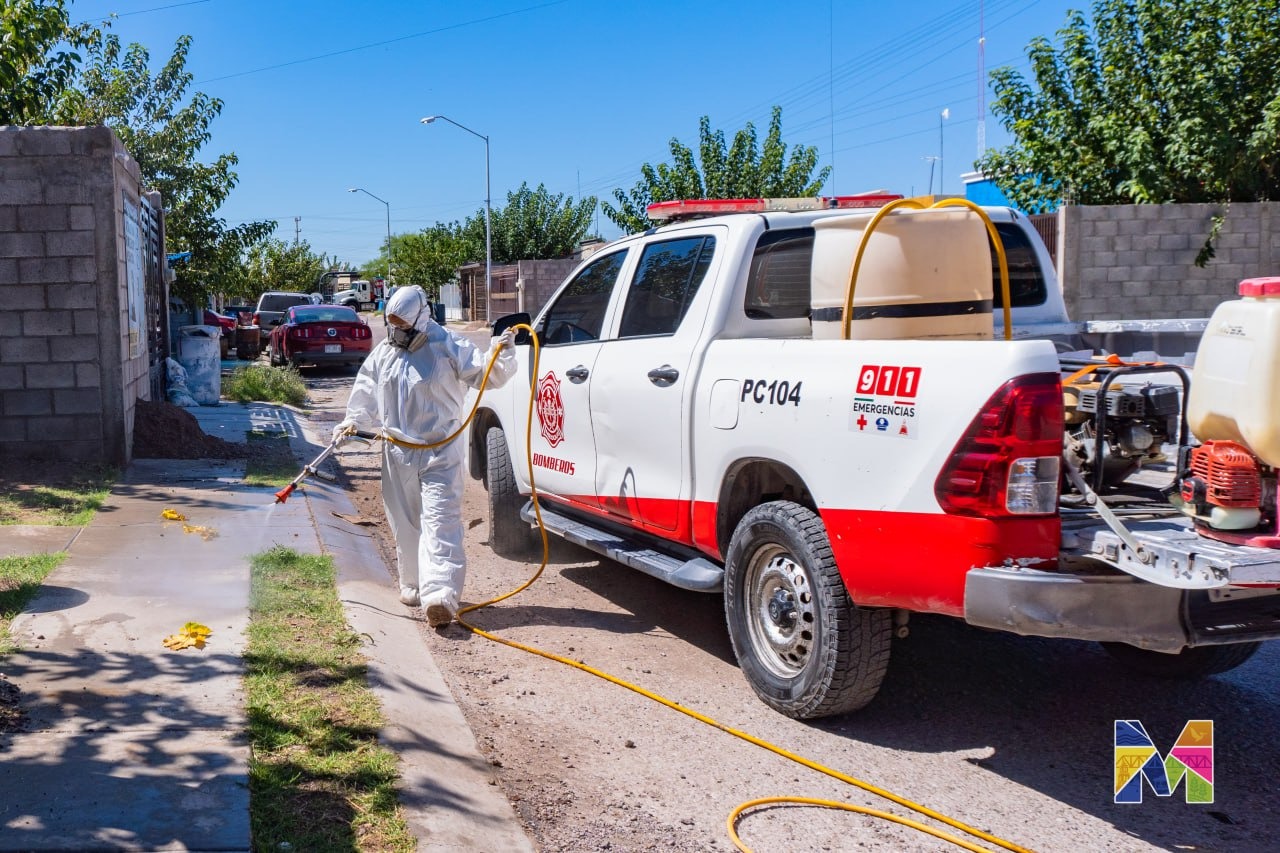 Meoqui.- Con el objetivo de prevenir enfermedades transmitidas por vectores como lo es la Rickettsia, el Gobierno de Meoqui continúa con la campaña integral para prevenir la proliferación de garrapata, esto con acciones coordinadas entre Protección Civil, Bomberos, Salud, Servicios Públicos Municipales, Desarrollo Urbano y Ecología y Desarrollo Rural, mismos que han fumigado más de 250 viviendas, así como la desparasitación y vacunación antirrábica a más de 150 mascotas en 7 comunidades del municipio.