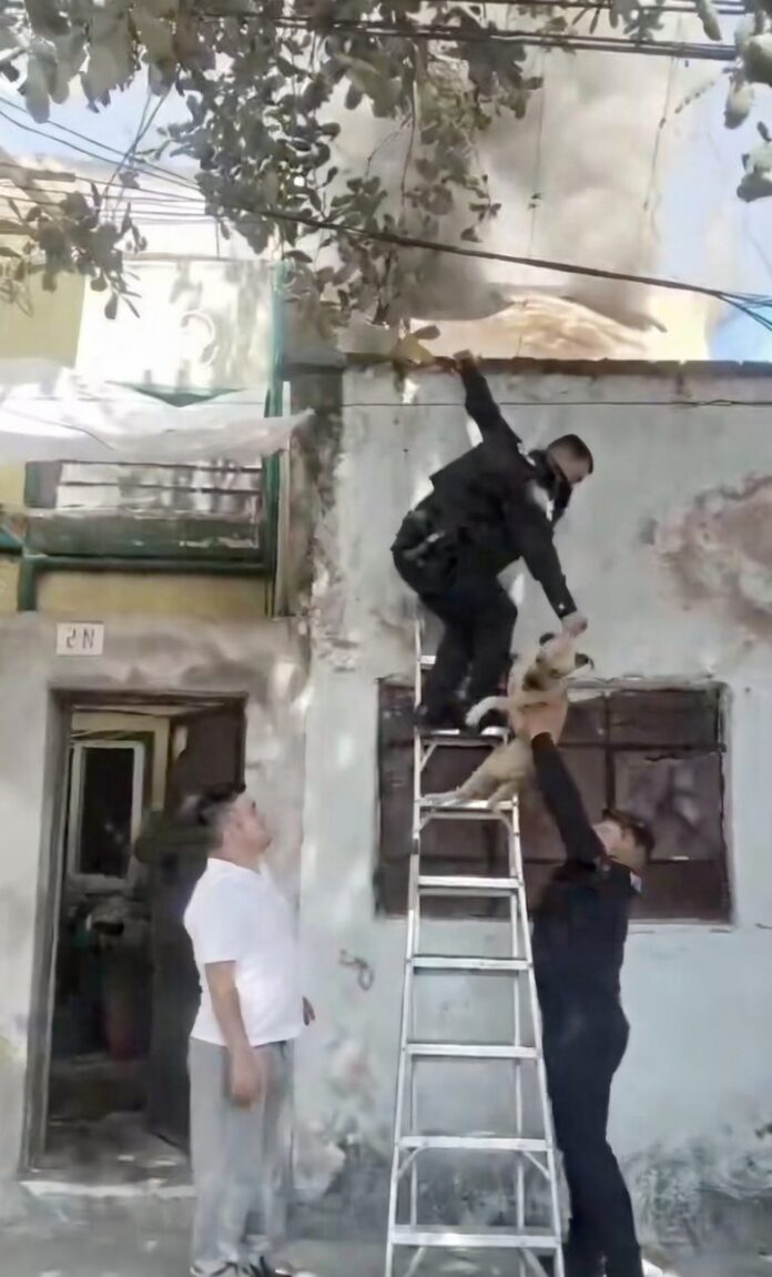 El siniestro se reportó en las primeras horas del día, y el fuego avanzó rápidamente, destruyendo las escaleras internas y dejando a la mascota sin ruta de escape, expuesta al denso humo y al calor intenso en la parte alta del inmueble. Ante la urgencia y tras confirmar que no había personas en el interior, los agentes del Sector Tacubaya decidieron intervenir para salvar la vida del animal.