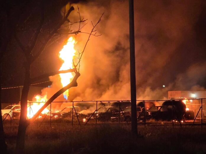 Aldama.- Un incendio de gran magnitud consumió siete pipas cargadas con gas en una planta de almacenamiento ubicada entre la etapa 1 y la etapa 2 del fraccionamiento Álamos, en el municipio de Aldama, lo que provocó una intensa movilización de cuerpos de emergencia.
