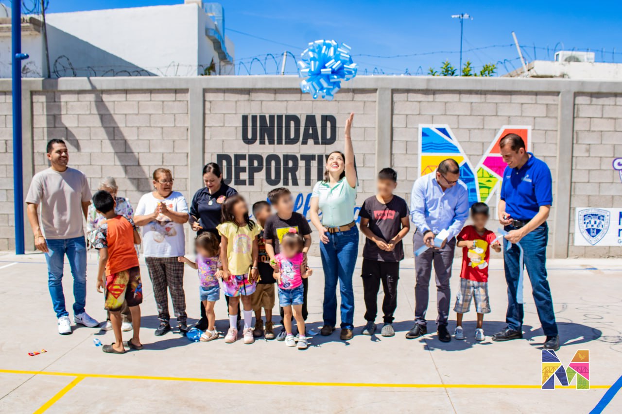 Meoqui.- La Alcaldesa de Meoqui Miriam Soto y el coordinador de Desarrollo Municipal de Gobierno del Estado, Jorge Puentes, encabezaron la entrega de la nueva unidad deportiva y área de juegos infantiles en la colonia Villezcas, como parte del compromiso de la Arquitecta, por recuperar y dignificar los espacios públicos del municipio. La obra contó con una inversión de aproximadamente 1.7 millones de pesos y beneficiará directamente a decenas de familias del sector.