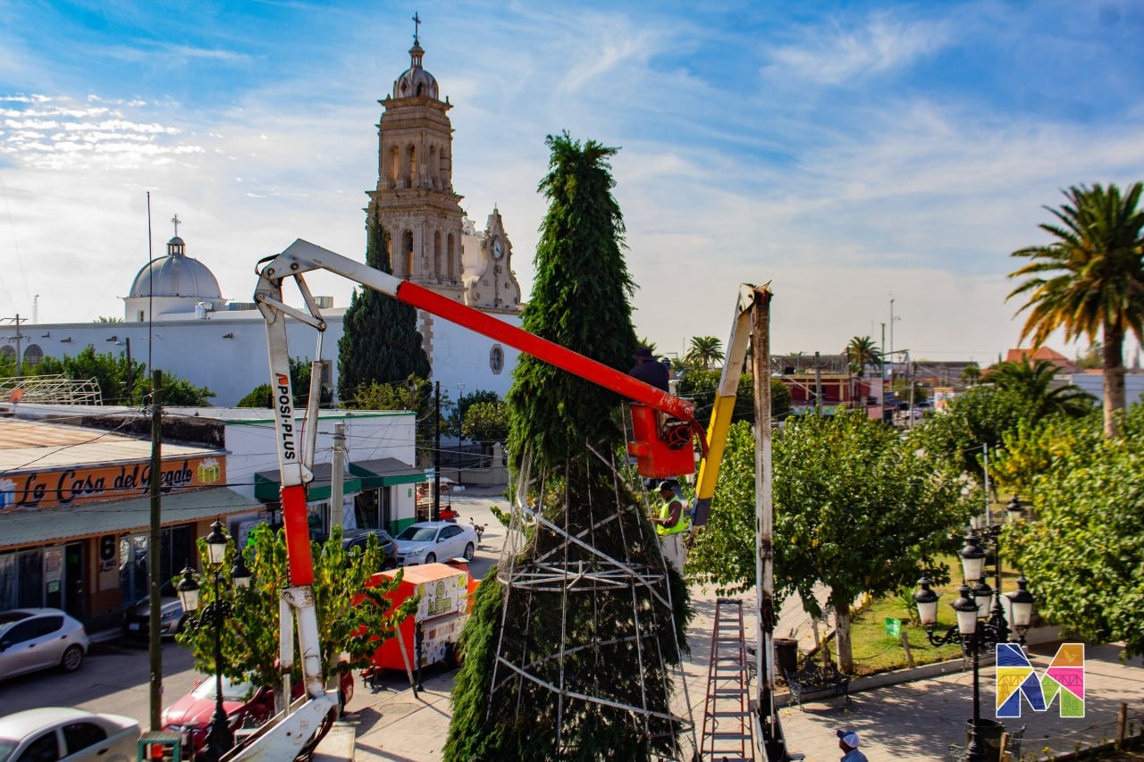 Meoqui.- El espíritu navideño llegó al municipio de Meoqui, donde dio inicio la instalación del Árbol Navideño, así como los decorativos de las fiestas decembrinas, mismos que serán encendidos este próximo 7 de diciembre en un gran evento con presentaciones artísticas y muchísimas actividades para las familias del municipio.