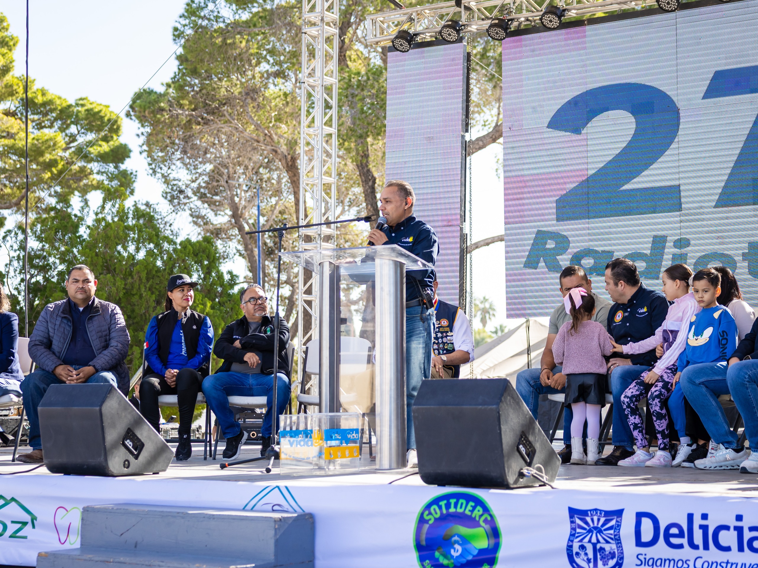 Valenciano García destacó que el Radioteletón representa un esfuerzo genuinamente ciudadano, sostenido a lo largo de casi tres décadas gracias a la participación de empresas socialmente responsables, voluntarios y radiodifusoras locales. “Hablamos de 27 años de un esfuerzo que nació del compromiso de nuestra gente y que hoy sigue demostrando que Delicias es una comunidad solidaria, unida y generosa”, expresó.