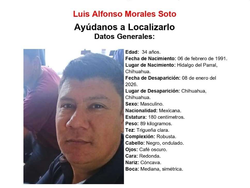 Chihuahua.– En relación a la información que circula y señala que el elemento de la Dirección de Seguridad Publica Municipal, Luis Alberto Morales Soto, había sido reportado como desaparecido, de acuerdo a la notificación de su familia el mismo ya fue localizado y a decir de ellos se encuentra detenido en los Estados Unidos.
