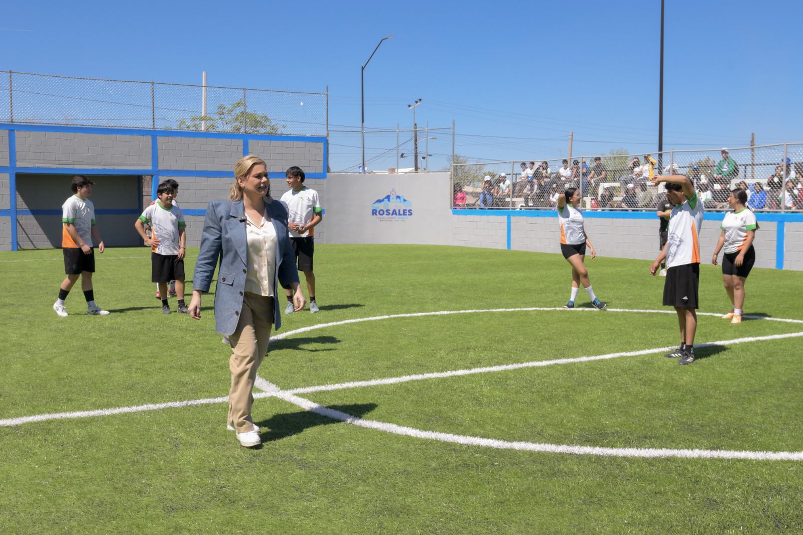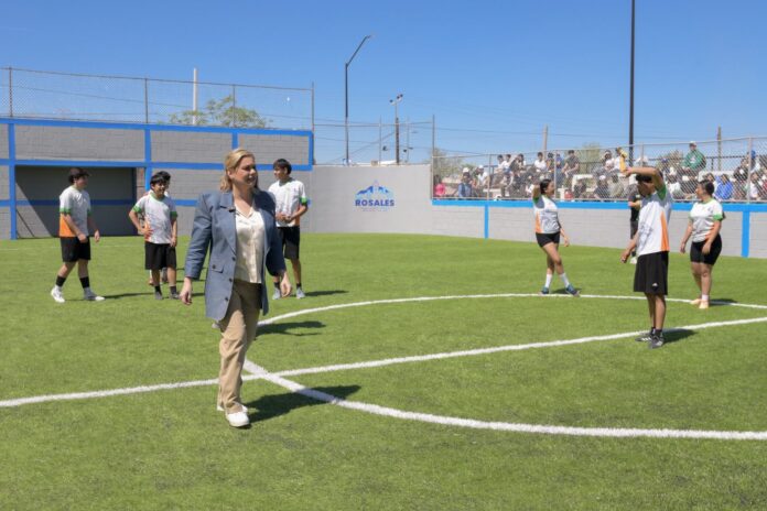 “Aquí en esta deportiva, los niños de congregación Ortiz van a ser sus mejores amigos, van a celebrar sus primeros triunfos, van a aprender a levantarse después de perder y a ganar con generosidad”, añadió la titular del Ejecutivo.