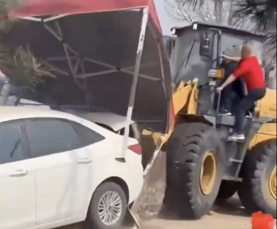 Imágenes captadas por testigos y cámaras de seguridad muestran el momento en que la maquinaria pesada impacta contra puestos, vehículos y personas que se encontraban en el lugar.
