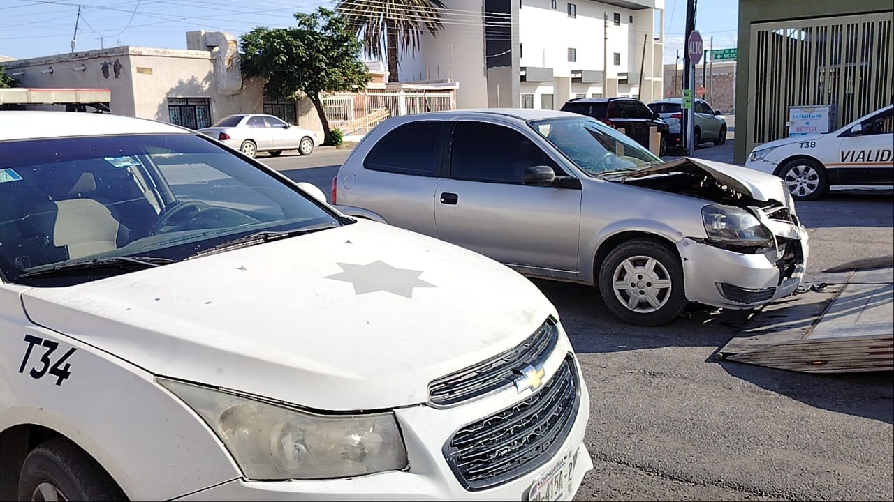 Un accidente vial tipo choque entre dos vehículos se registró alrededor de las cinco y media de la tarde de este miércoles en el sector poniente, por lo que Vialidad se movilizó hasta el lugar encontrando un auto tipo Chevy en color gris con daños materiales en su parte frontal, así como una camioneta Mazda de tipo familiar con impacto en su parte lateral derecha.