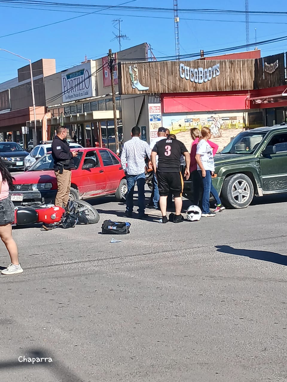 Un motociclista resultó lesionado luego de registrarse un percance vial en el cruce de la avenida Primera y la calle Primera Norte, en el primer cuadro de la ciudad, justamente en contra esquina de Parquímetros, en donde participaron una motocicleta y una camioneta Jeep Patriot en color verde.
