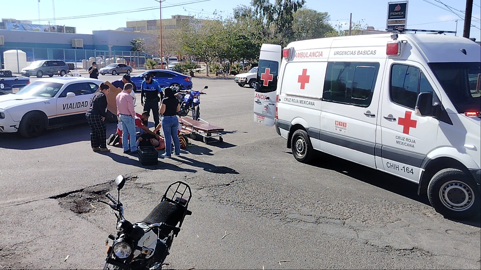 El motociclista fue atendido en el lugar por paramédicos de la Cruz Roja Mexicana y posteriormente trasladado a un centro médico para su valoración y atención especializada.