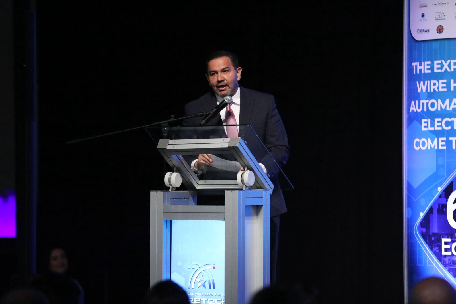 En el presidium estuvieron Ricardo Samaniego, juez del condado de El Paso; Mauricio Ibarra Ponce de León, Cónsul General de México en esa ciudad; Adriana Pulecio, titular de Desarrollo Económico de El Paso y Jesús Duarte, presidente de Expo Wiretech.