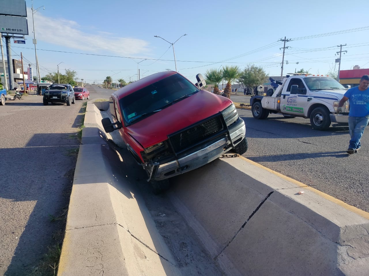 Durante la mañana de este viernes se registró un aparatoso percance vial en la avenida Solidaridad, a la altura de la colonia Obrera, cuando una pick-up que circulaba en sentido de norte a sur terminó dentro del canal revestido que corre paralelo a dicha vialidad.