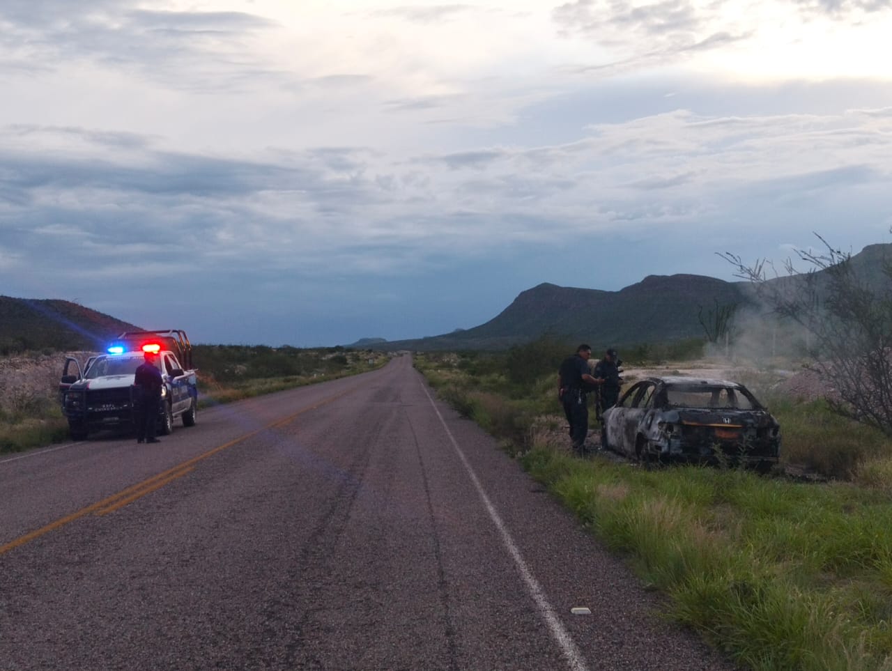 Los hechos ocurrieron la tarde del jueves, cuando los agentes fueron interceptados por un ciudadano a la altura del entronque hacia Satevó y el cual manifestó haber observado un vehículo a la altura del kilómetro 30, en sentido de Rosales-Satevó aparentemente abandonado y con daños visibles por incendio.