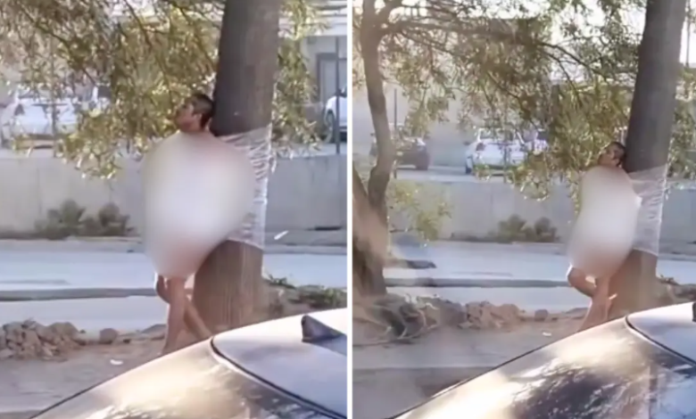 En el material audiovisual se aprecia al hombre consciente y con signos de crisis emocional, mientras permanece atado al árbol a plena luz del día. Testigos grabaron la escena antes de la llegada de la policía, lo que amplificó la difusión del caso en plataformas digitales.