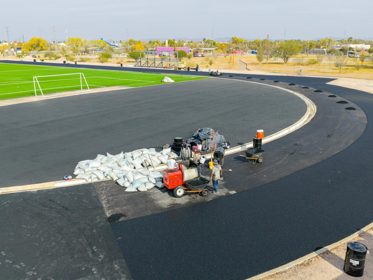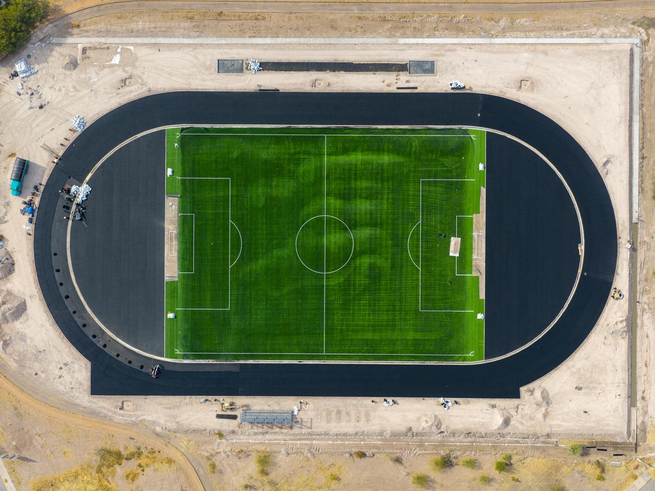 Presenta Obras Públicas avances en pista de atletismo y cancha de fútbol