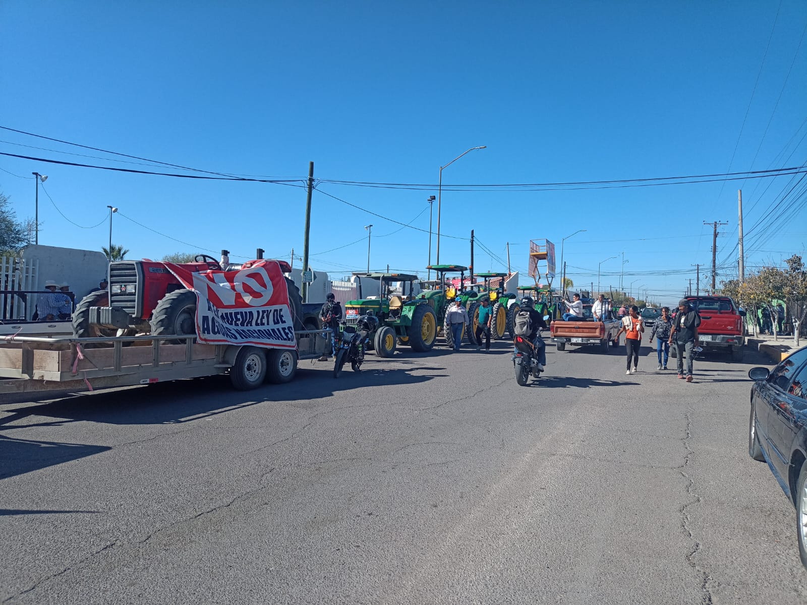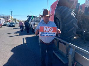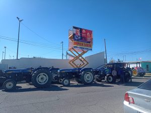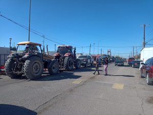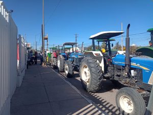 Agricultores apoyados con una treintena de tractores, que comenzaron a llegar desde las 10 de la mañana para apostarse por la avenida 14 sur, protestaron contra Cruz Pérez Cuéllar y Morena en torno a la aprobación de la Nueva Ley de Aguas Nacionales.