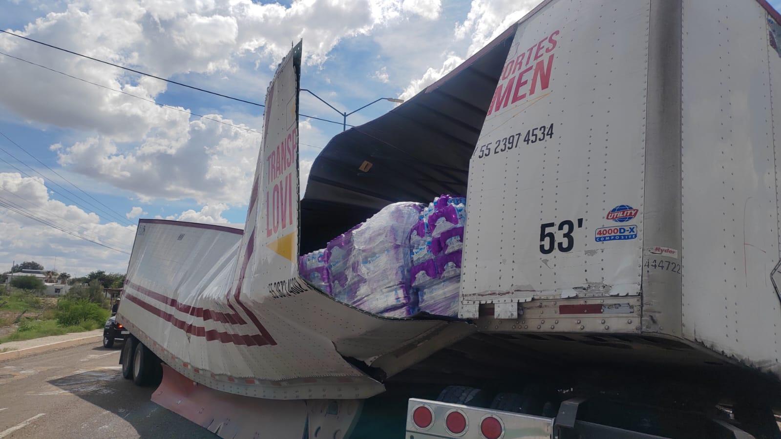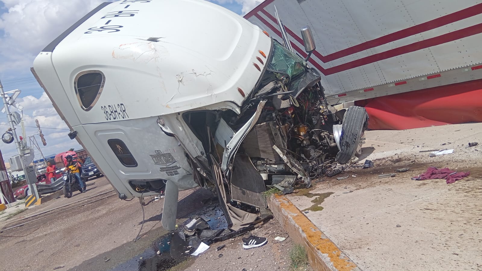 Camargo.- El conductor de un trailer quiso ganarle el paso al tren en la ciudad de Camargo, Chihuahua, y se originó un aparatoso accidente.
