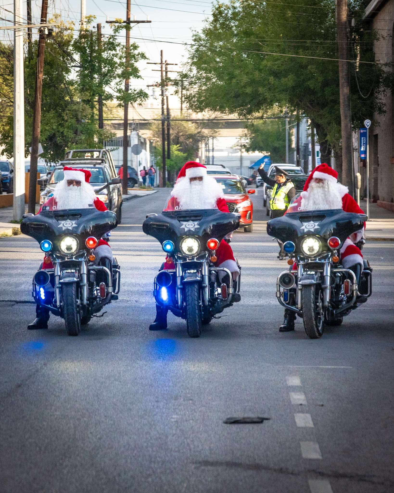 En lugar de infracciones, agentes van a dar dulces… claro, si se porta bien. Ya huele a Navidad en Monterrey y los santas motorizados recorriendo la ciudad todavía más.