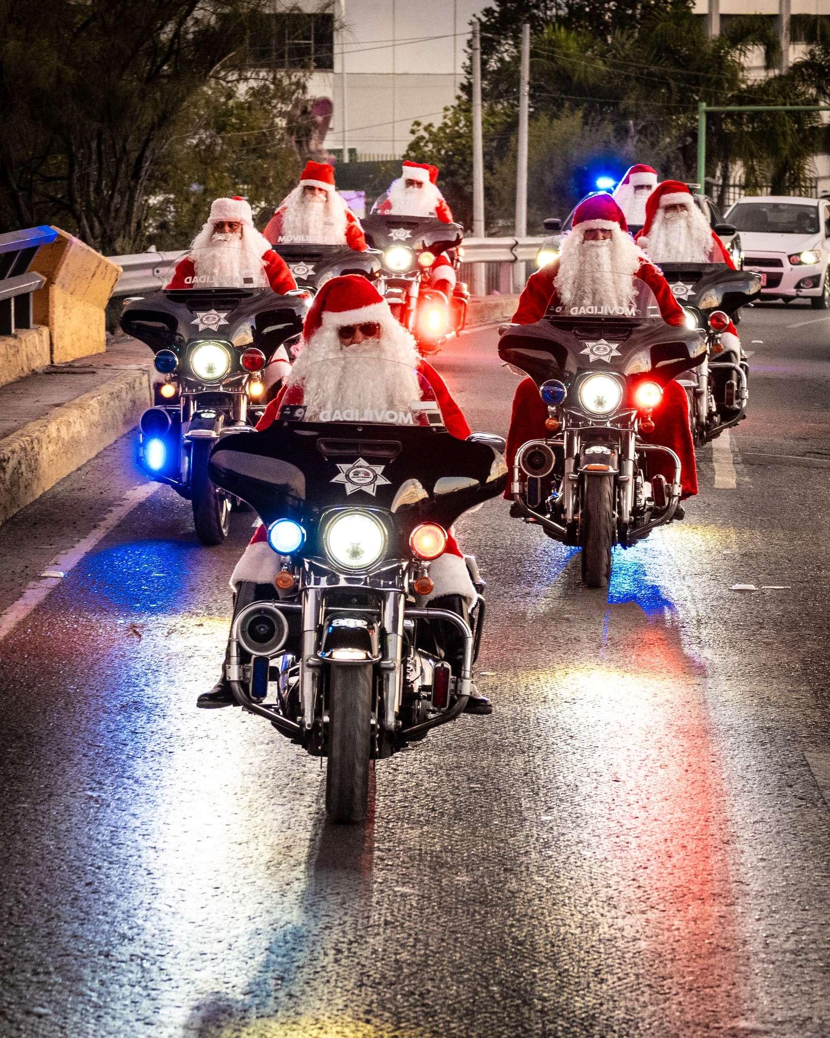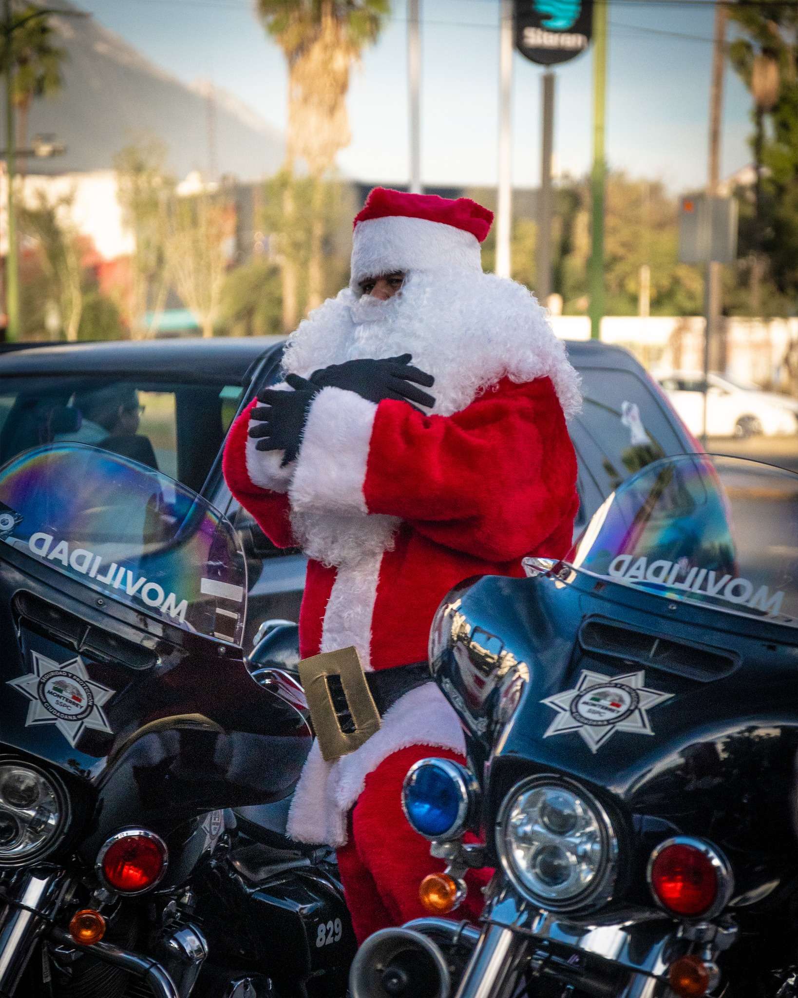 Como cada año desde hace casi dos décadas, varios oficiales de Tránsito de Monterrey se convierten en ayudantes del verdadero Santa Claus para poner el ambiente navideño en las avenidas de la ciudad.