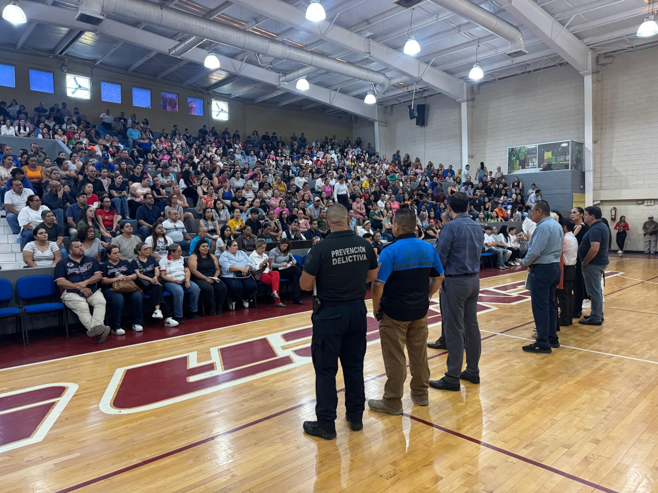 En una reunión general de padres de familia celebrada en el gimnasio del plantel, la directora de la Secundaria Técnica No. 52 dio lectura a los acuerdos alcanzados entre autoridades educativas y de seguridad, con el fin de garantizar un entorno más seguro para estudiantes, docentes y la comunidad escolar.