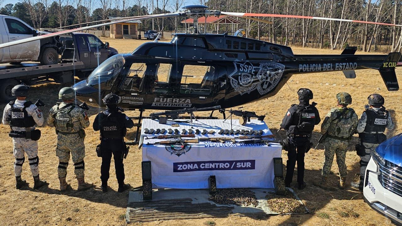 Como parte de las acciones de reforzamiento táctico implementadas en el municipio de Guachochi y la zona serrana, los policías de Despliegue de la Secretaría de Seguridad Pública del Estado (SSPE), en coordinación con la Guardia Nacional y el Ejército Mexicano, llevaron a cabo el aseguramiento de un importante arsenal, así como de vehículos presuntamente utilizados por el crimen organizado, luego de repeler una agresión armada por parte de civiles.