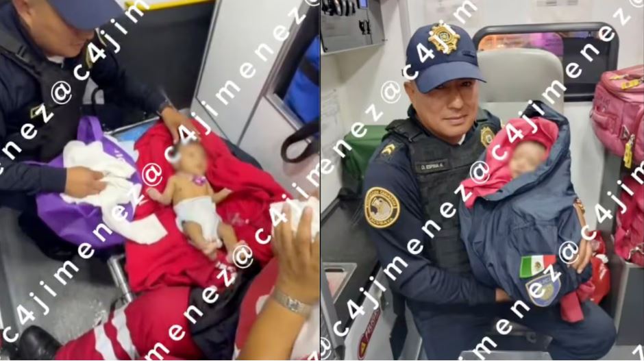 Al llegar al lugar, los agentes identificaron el origen del llanto y localizaron al bebé abandonado sobre la banqueta. Uno de los policías lo tomó en brazos, lo cubrió con su chamarra para protegerlo del frío y solicitó la presencia de una unidad médica, mientras intentaba calmarlo y mantenerlo abrigado.