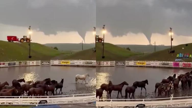 A través de las redes sociales, se viralizó un impresionante y bellísimo video en el que se ve un atardecer como de película, en el cuál se ven varios caballos caminando libres, mientras al fondo se forma un tornado.